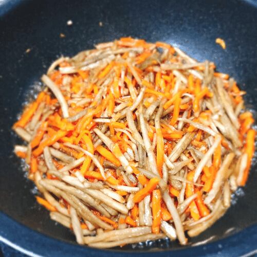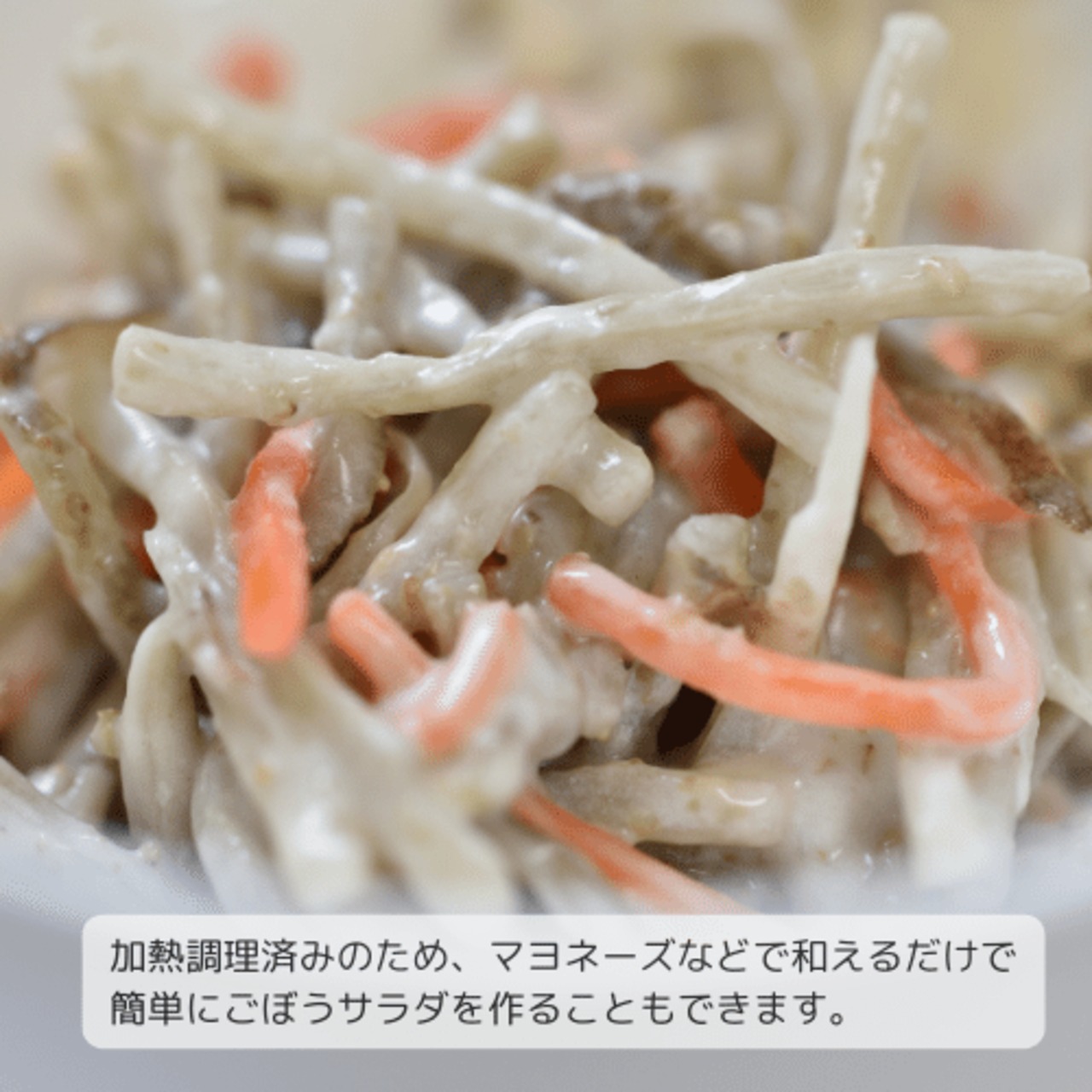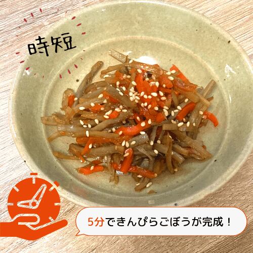 きんぴらごぼうに適したカットをした上で加熱済のため、時短調理が可能になります。